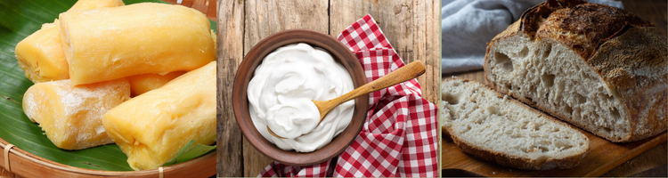 - Tempe, tape singkong, roti → karena dominan ragi atau kapang, rasanya lebih gurih atau manis.